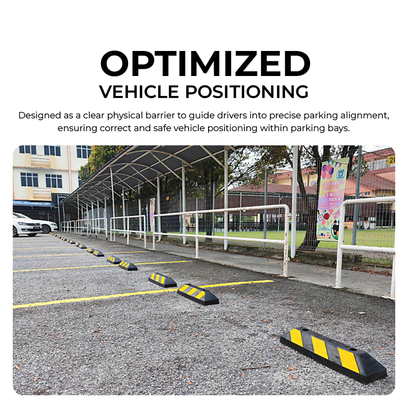 Rubber Wheel stopper fabricate from reinforced solid rubber, which they have high impact resistance to severe impact & brutal weather conditions. It was recommend to install onto the ground of the allotted parking slots to prevent the vehicle from going beyond a certain limit; therefore, protecting the vehicle from damages / glass glazing structure.